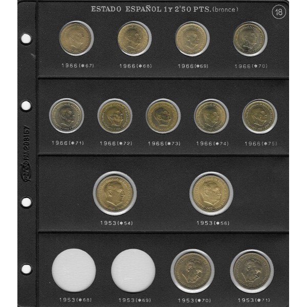 Modelo peseta cabeza Franco fina. Se entrega hoja Pardo de imagen sin las piezas de 2.50 de 68-69.