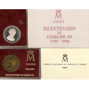 2 medallas oficiales de la FNMT (una de ellas de plata) con estuches, caja y certificados originales.